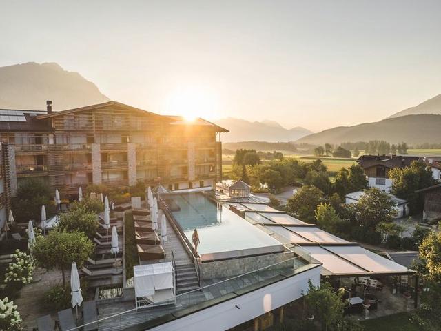 Das mit fünf Sternen in der Landeskategorie prämierte Luxushotel offeriert Ihnen extravagante Zimmer und Suiten mit üppiger Ausstattung. Mit dem All-inclusive-Service werden Ihre Ferien in Tirol zum unvergesslichen Genussurlaub, denn alle Speisen im Restaurant sind frisch und von ausgesucht guter Qualität. In der Bar mit Weinkeller probieren Sie die Köstlichkeiten Österreichs. Der Spa mit Sauna, Hallenbad, Kosmetikabteilung und insgesamt neun Pools verhilft Ihnen zu lang anhaltender Wellness und unterstützt Ihre Fitness. Ihr Nachwuchs wird von den kindgerechten Becken und der riesigen Rutsche begeistert sein.