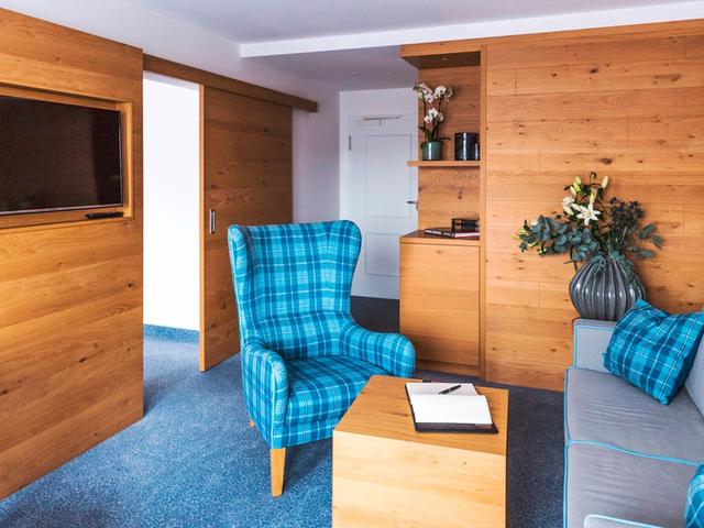 Die Juniorsuiten (Suite und Superiorsuite auf Website) (min./max. 2 Erw.), ca. 40 m², bestehen aus einem separaten Wohn- und Schlafbereich. Sie verfügen über eine ähnliche Ausstattung wie die Doppelzimmer und sind geräumiger ausgestattet und teilweise Balkon/Terrasse).