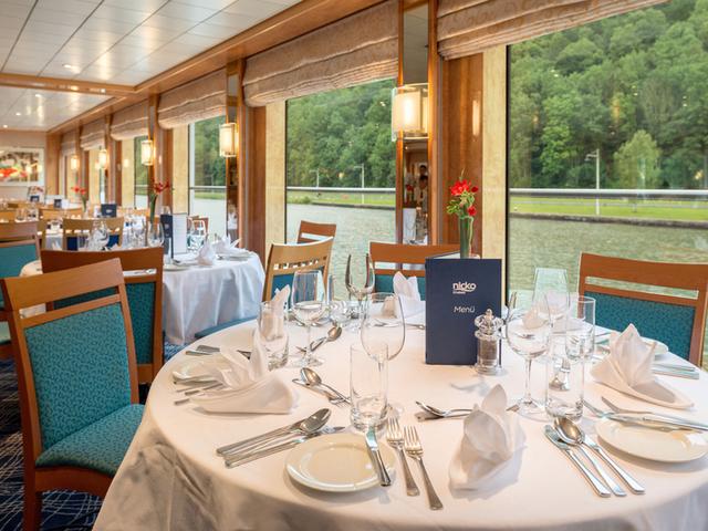 Ausstattung: Die MS Bolero verfügt über 4 Passagierdecks mit einem Panorama-Restaurant, Panorama-Salon mit Bar, einem Sonnendeck mit Windschutzelementen, Sonnensegel, Liegestühlen, Stühlen und Tischen, einem gemütlichen Wellnessbereich mit Sauna, Ruhebereich mit zwei Liegen, Whirlpool und Fitnessgeräten und einem Souvenir-Shop.