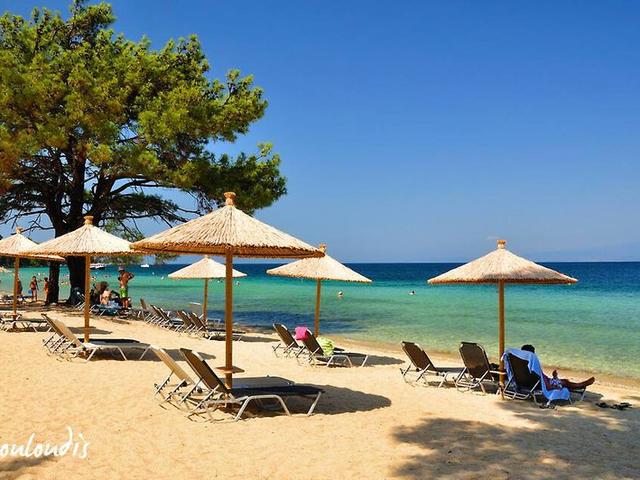 Strand: Sandstrand. Am Strand werden Sonnenliegen und Schirme zur Anmietung angeboten.