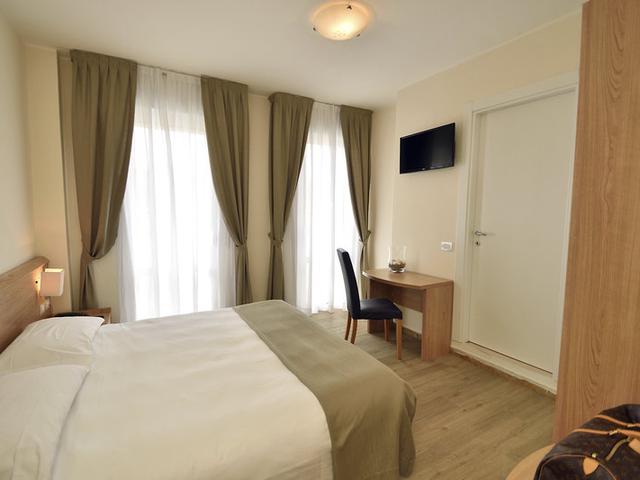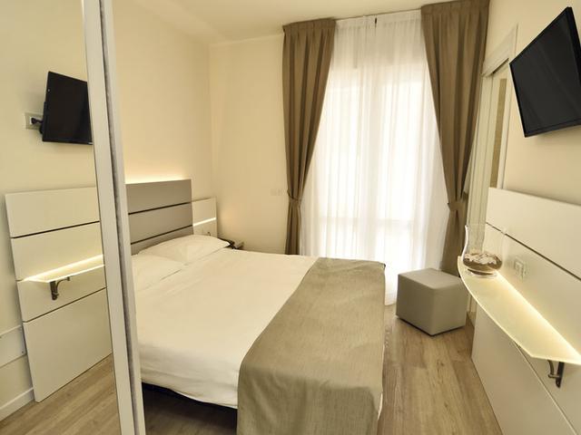 Alle 46 Zimmer mit Dusche/WC, Föhn, Klimaanlage, Telefon, Sat-TV (ca. 5 dt. Progr.), Safe, W-LAN (ohne Gebühr) und Minibar. Doppelzimmer Standard Typ DA2: ca. 10-13 m², Balkon zur Straßenseite. Vierbettzimmer Family Typ VA4: ca. 13m², 1 Zusatzbett oder Stockbett möglich, mit französischem Balkon zur Straßenseite. Doppelzimmer Coral Typ DS2: mit Balkon und seitlichem Meerblick. Einzelzimmer Coral Typ EL1: ca. 9-10m², Balkon u. seitlichem Meerblick. Alle m² Angaben beziehen sich auf den Wohnbereich, ohne Badezimmer und Balkon. Gitterbett auf Anfrage, ca. €10,- pro Tag vor Ort.