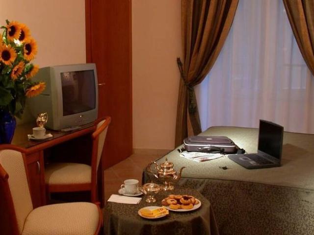 Hotel: Das 1890 erbaute und vor Kurzem renovierte klimatisierte Hotel hat insgesamt 23 Zimmer und einen Empfangsbereich, in dem sich eine 24h-Rezeption, ein Hotelsafe und ein Aufzug befinden. Die Gäste können ihr Frühstück im Frühstücksraum einnehmen, und dank einer Übereinkunft mit einem privaten Parkplatzunternehmen, können Fahrzeuge gegen eine zusätzliche Gebühr in einer Garage untergestellt werden. *2 EUR City Tax pro Person und Nacht. Direkte Bezahlung. *No wifi because of renovations until 22nd October 2015.