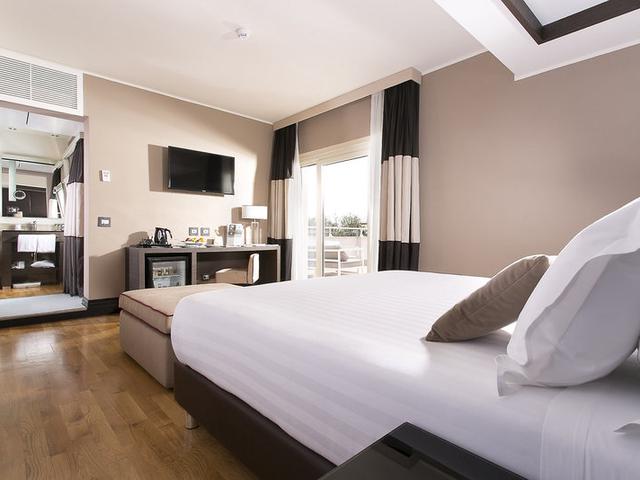 In den Zimmern gibt es eine Klimaanlage und eine Heizung. Die Zimmer verfügen über ein Doppelbett oder ein Kingsize-Bett. Kinderbetten für die jüngsten Gäste sind ebenso vorhanden. Außerdem sind ein Safe, eine Minibar und ein Schreibtisch verfügbar. Eine Tee-/Kaffeemaschine zählt ebenfalls zur Standardeinrichtung. Darüber hinaus sind ein Telefon, Sat-TV, ein Radio, ein Wecker und WiFi vorhanden. Die Badezimmer sind ausgestattet mit einer Dusche, einer Badewanne und einem Bidet. Ein Haartrockner und ein Telefon stehen für den Gebrauch zur Verfügung. Für besonderen Komfort in den Badezimmern sorgen Kosmetikartikel. Das Haus bietet Familien- und Nichtraucherzimmer.