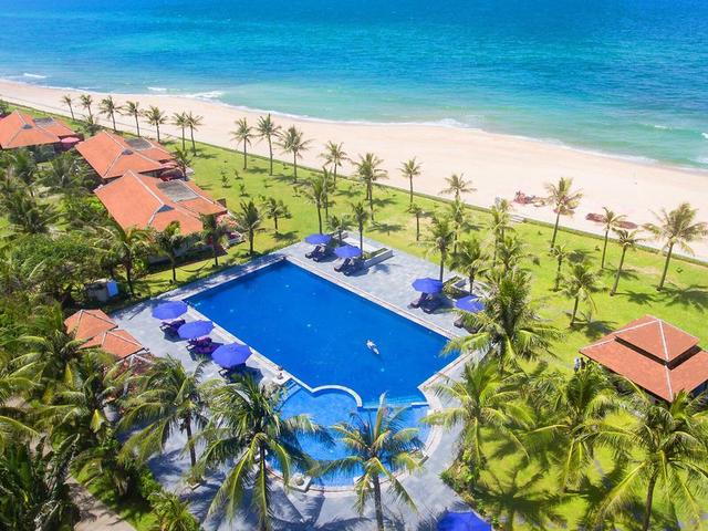 Lage & Umgebung Das Hotel liegt rund 15 km östlich von der Stadt Hue im Dorf Thuận An am Strand Thuận An. Die Gegend ist von malerischen Reisterrassen und der schönen Lagune Tam Giang umgeben und liegt in einem luxuriösen, tropischen Garten mit Kokospalmen, gepflegten Rasenflächen und Lotusteichen. Zu den Sehenswürdigkeiten in der Nähe gehören die Boote auf dem Parfümfluss (rund 12 km), die Kaiserstadt (rund 15 km), die Thien-Mu-Pagode (rund 17 km) und die Thanh-Toan-Brücke (rund 25 km entfernt). Vom Resort aus ist eine rund 20-minütige Fahrt ins Stadtzentrum von Hue, in dem es Bars, Diskotheken und einen Bahnhof gibt. Das Hotel liegt nur rund 45 Minuten vom internationalen Flughafen Phu Bai entfernt.