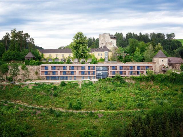 Hotelbeschreibung: Unser Hotel – die „Schatzkammer“ – liegt vor den imposanten Mauern der historischen Burg Kreuzen auf einer Anhöhe im Kneipp Kurort Bad Kreuzen.