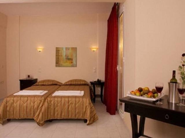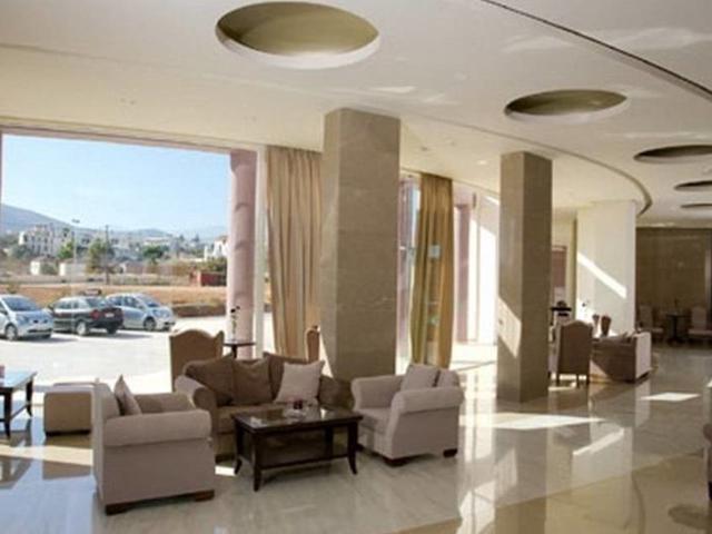 Hotel: Das Hotel liegt im Dorf Gouves, unmittelbar am gut organisierten Sandstrand und mit Platz für Ruhe und Entspannung. Die Entfernung zum internationalen Flughafen Iraklio beträgt ungefähr 16 km.||Das Hotel bietet einen Empfangsbereich mit 24h-Rezeption mit Check-out-Service, einen Hotelsafe, eine Wechselstube, einen Aufzug und Sitzbereiche im Empfangsbereich. Zu den weiteren Einrichtungen, die den Gästen in diesem klimatisierbaren Strandhotel geboten werden, zählen WLAN-Internetzugang, ein Konferenzraum, ein TV- und Internetbereich, 2 Restaurants und ein Lounge-Café. Außerdem gibt es ein Spielzimmer, einen Wäscheservice, eine Fahrradvermietung und ein Parkplatz. Die kleinen Gäste können sich auf dem Kinderspielplatz austoben.||Alle Zimmer sind modern und komfortabel und verfügen über einen Balkon oder eine Terrasse. In den Zimmern befinden sich zudem ein eigenes Badezimmer mit Dusche oder Badewanne und Haartrockner, außerdem ein Direktwahltelefon, Sat.-TV, ein Radio, Internetzugang, ein Kühlschrank und ein Doppelbett. Des Weiteren sind in den Zimmern Klimaanlage und Heizung sowie ein Schließfach Teil der Standardausstattung.||Das Hotel bietet einen Pool mit Pool-/Snackbar, Liegestühlen und Sonnenschirmen. Ferner können die Gäste Tennis und Tischtennis spielen. Golfenthusiasten finden den nächsten Golfplatz in ungefähr 7 km Entfernung.||Allmorgendlich wird ein kontinentales Frühstücksbuffet aufgetragen. Das Mittagessen kann à la carte oder als Wahlmenü bestellt werden. Das Abendessen kann vom Buffet gewählt werden.