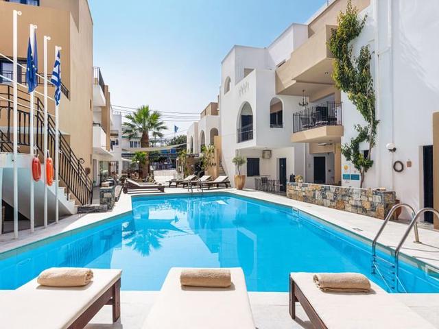 Lediglich zwei Gehminuten vom herrlichen, flach abfallenden Sandstrand entfernt, befindet sich das Residence Villas Hotel im Urlaubsort Stalis auf Kreta. Die mit vier Sternen in der Landeskategorie ausgewiesene Apartmentanlage überzeugt durch ihren griechischen und zeitgenössischen Architekturstil, die perfekt miteinander harmonieren. Feriengäste sind begeistert von der Strandnähe und den etlichen Vergnügungsmöglichkeiten in der Umgebung. Nach einem kurzen Fußweg erreichen Sie das lebhafte Zentrum von Stalis und können z.B. in den Geschäften ausgiebig bummeln.