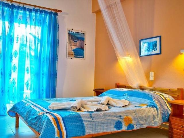 Lage: In einer magischen grünen Umgebung, zwischen jahrhundertealten Olivenbäumen und bunten Gärten gelegen. Ein Familienbetrieb, ruhig, gastfreundlich, kostengünstig, wo sich hunderte von Touristen jede Saison wohl fühlen. Das Hotel liegt in Keri, 750 m vom Strand, 14 km vom internationalen Flughafen Zakynthos und 16 km von Zakynthos.