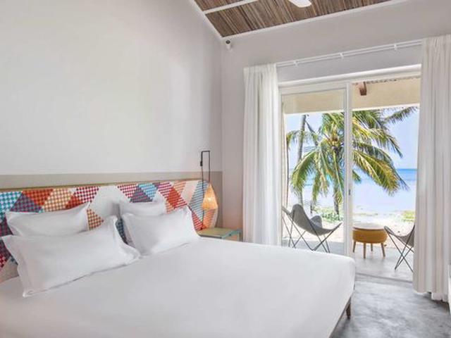 Unterkunft: Die 65 Zimmer liegen zum Meer gerichtet, bieten wunderschöne Ausblicke über die Lagune und sind in mehreren landestypischen Häusern mit leuchtend roten Dächtern untergerbacht. Sie unterteilen sich in 23 Ocean View Zimmer (32 m²) mit partieller Meersicht, 30 Ocean View Superior Zimmer (27 m²) und 12 Beachfront Zimmer (37 m²). Alle Zimmer verfügen über Bad, Dusche, WC, Klimaanlage, Deckenventilator, TV, kostenloses Wi-Fi, Minibar, Tee-/Kaffeekocher und Safe. Zudem stehen die Villa Hermitage (120 m²) mit 2 Schlafzimmern und die Villa Gombrani (235 m²) mit 4 Schlafzimmern und grossem Wohn- und Essbereich, Kitchenette und direktem Strandzugang zur Verfügung. Die Villa Gombrani bietet zudem einen eigenen Privatpool.